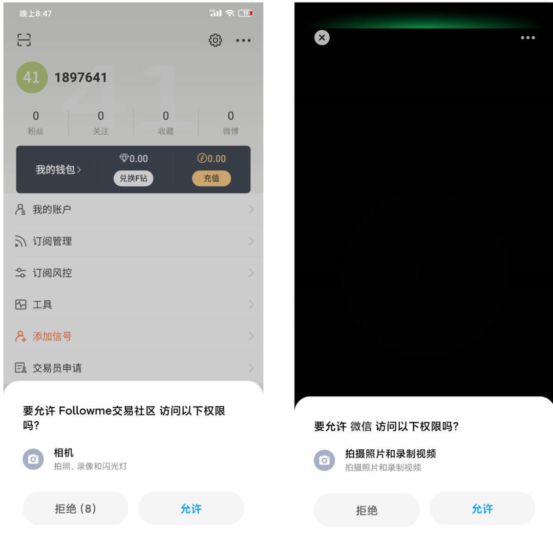 正确的要权限姿势,一定是用户使用到了相关的功能,强烈感知到这个功能和这个权限的关联性。比如用户不知道一个应用为什么要用到相机,但是当用户使用扫一扫触发授权弹窗的那一刻,用户的信任度是最高的。你可以对比一下下图的左右两半部分,明显右半边会更好。