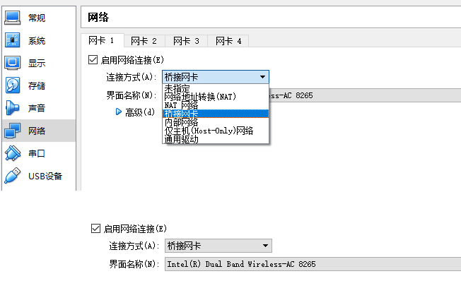 每个虚拟机都会有虚拟网卡,在你的笔记本电脑上,会发现多了几个网卡,其实是虚拟交换机。这个虚拟交换机将虚拟机连接在一起。在桥接模式下,物理网卡也连接到这个虚拟交换机上,物理网卡在桌面虚拟化软件上,在“界面名称”那里选定。
