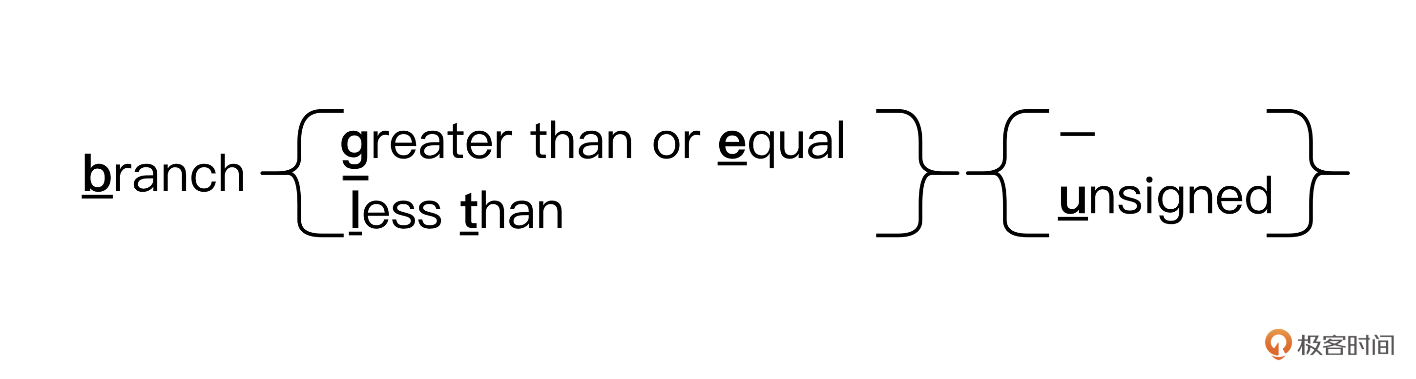 我们再结合例子加深一下理解。下图表示了这四个 RV32I 指令:bge,blt,bgeu,bltu。