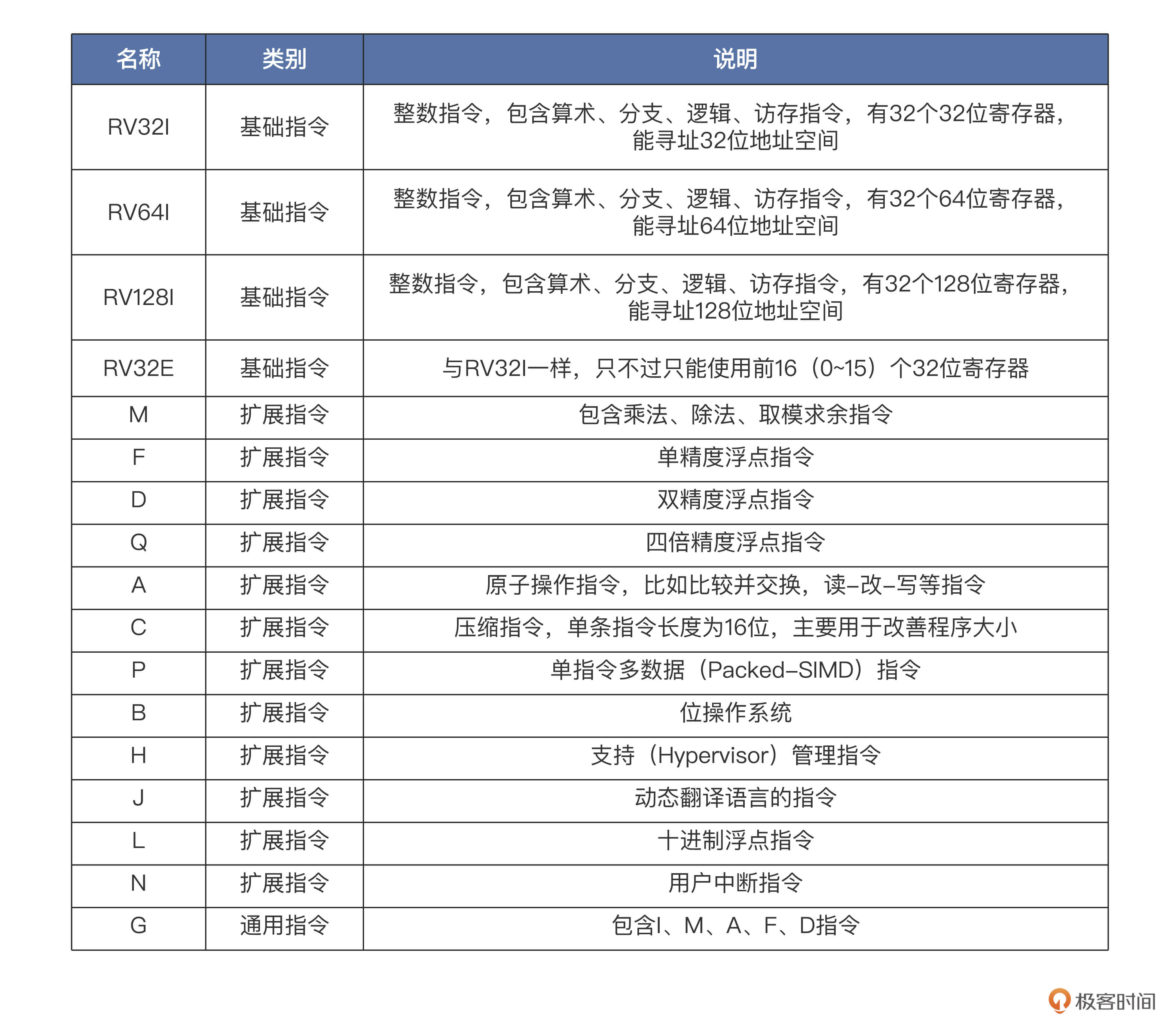 我给你列了一个表,用于给你展示一下RISC-V基础指令集和扩展指令集,如下所示: