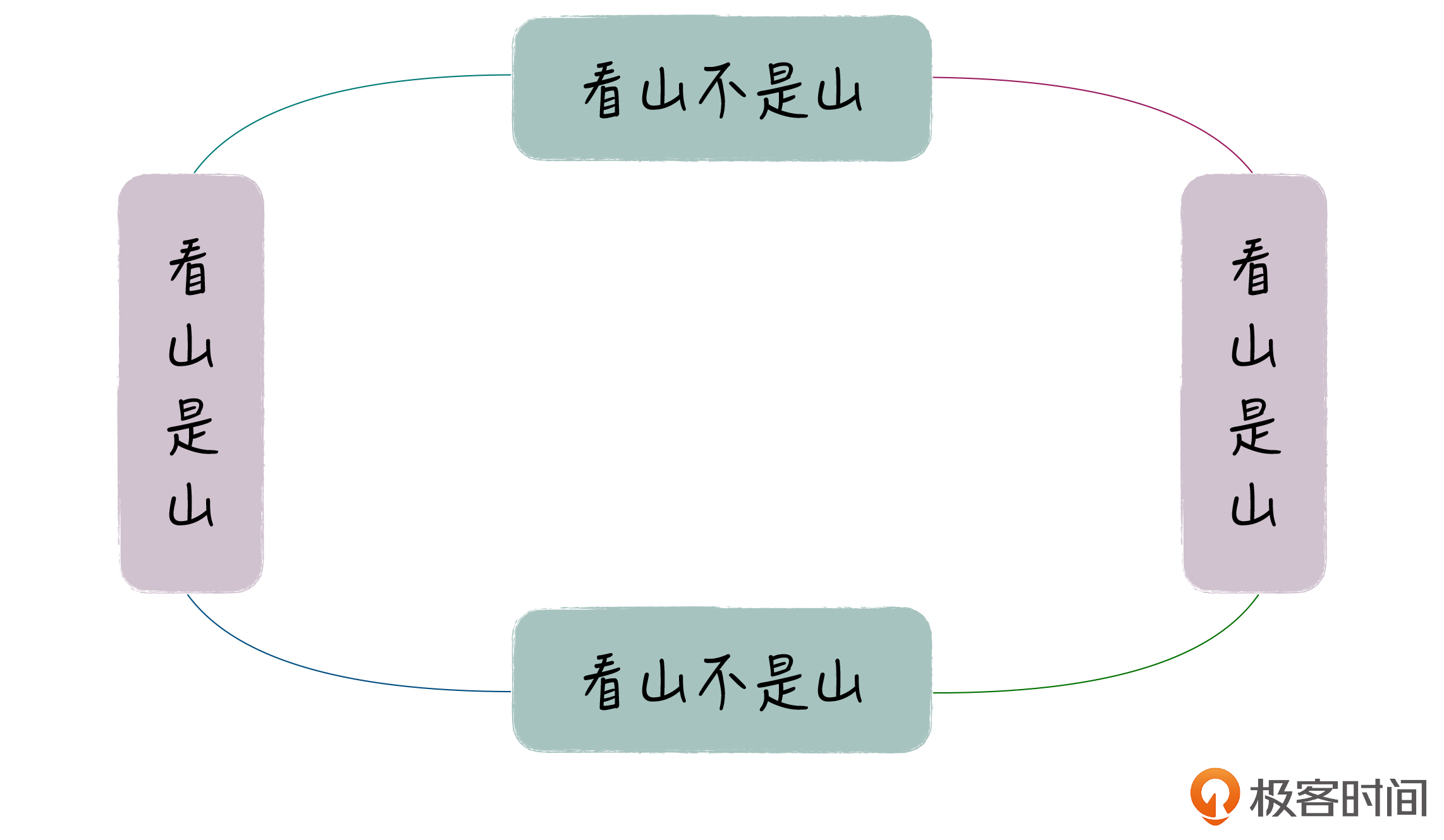 你可以发现,架构师的能力是一个逐渐提升的过程,如果从架构师的境界来看,由浅到深可以分为四层:第一层看山不是山,第二层看山是山,第三层看山不是山,第四层看山是山。