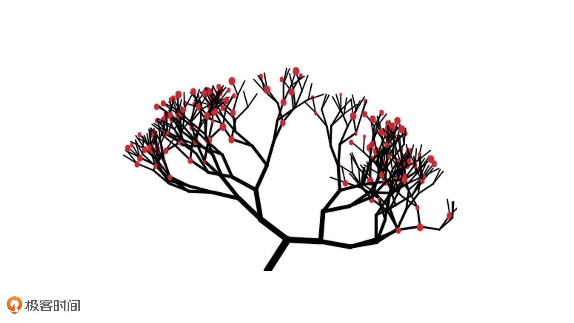 我们用前面学到的向量知识来绘制一棵随机生成的树,想要生成的效果如下: