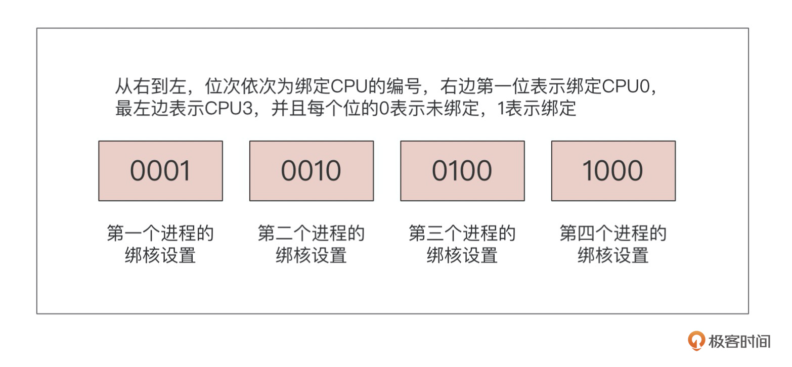 我们这么做的目的,其实就是在多核CPU下,让一个进程在某个给定的CPU上尽量长时间地运行而不被迁移到其他处理器。这样做的好处就是:一方面可以减少CPU调度产生的开销;另一方面可以提高每个CPU核的缓存命中率。