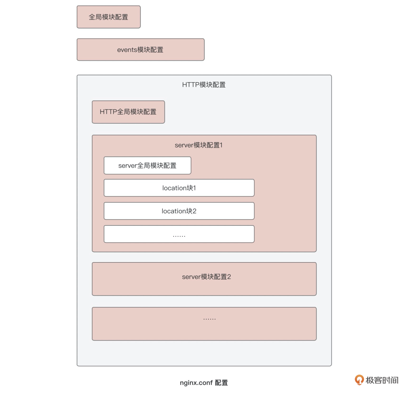 前面在介绍Nginx的时候,我有给你展示过这张Nginx配置的模块结构图,每个模块都可以做相应的配置。