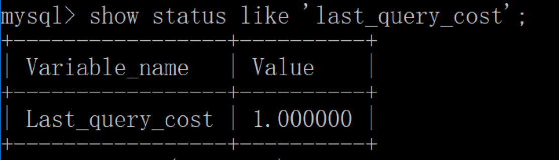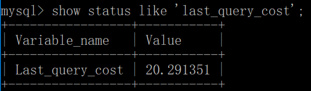 1 | mysql> SHOW STATUS LIKE 'last_query_cost'; |