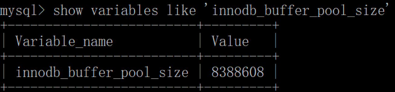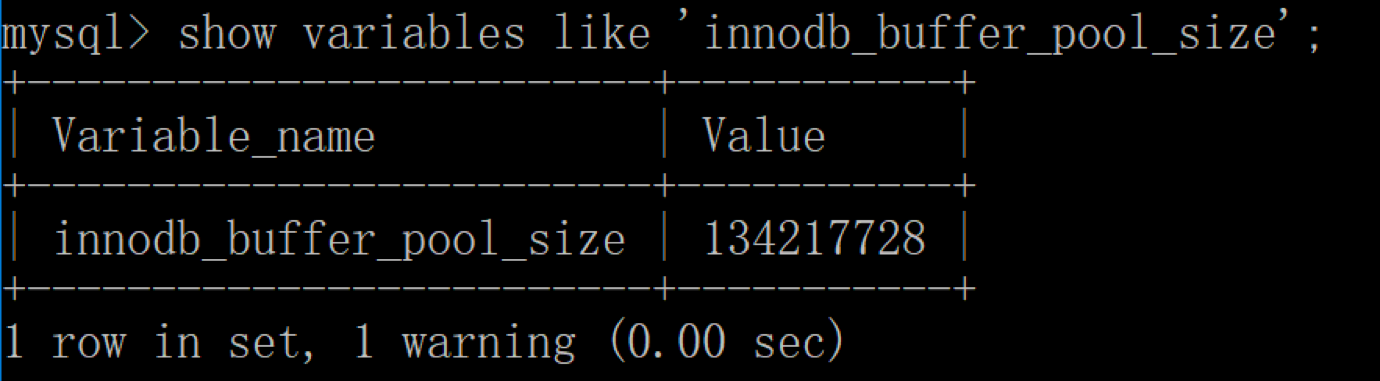 1 | mysql > show variables like 'innodb_buffer_pool_size' |
