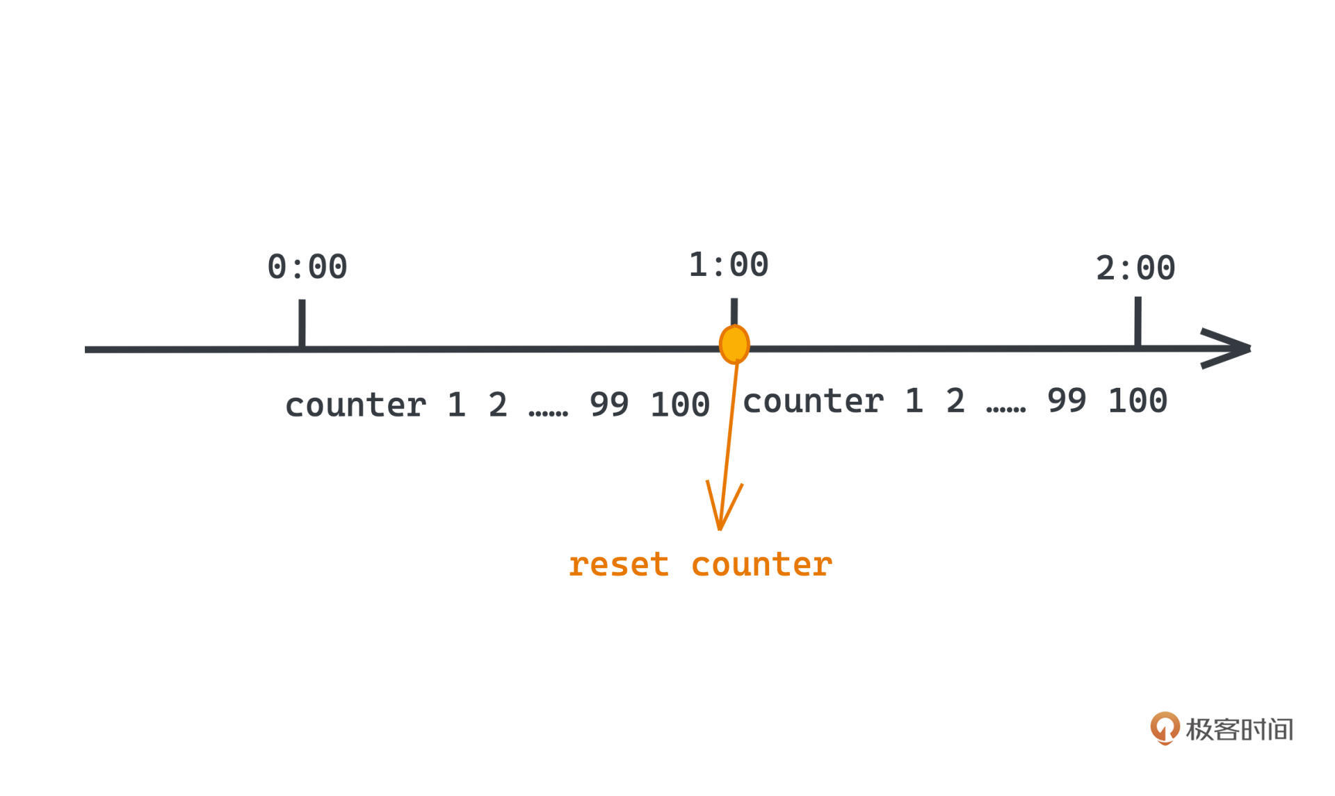 比如希望限制系统每分钟处理的请求数量,在100次,那我们只需要在内存中维护一个计数器,每次来一个请求,就对这个计数器+1,另外每过一分钟,也会定时把内存中的计数器清零。