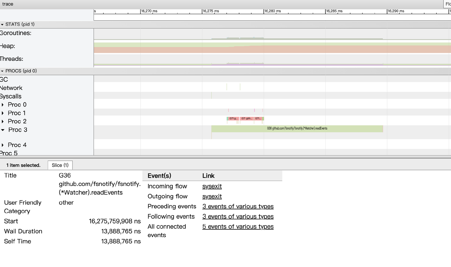 事件的版本、时间戳、栈ID、协程ID等整数信息使用LEB128 编码,用于有效压缩数字的长度。字符串使用UFT-8 编码。每个逻辑处理器P的缓存都是有限度的。当超过了缓存限度后,逻辑处理器P 中的 tracebuf 会转移到全局链表中。同时,trace 工具会新开一个协程专门读取全局trace 上的信息,此时全局的事件对象已经是序列化之后的字节数组了,直接添加到文件中即可。