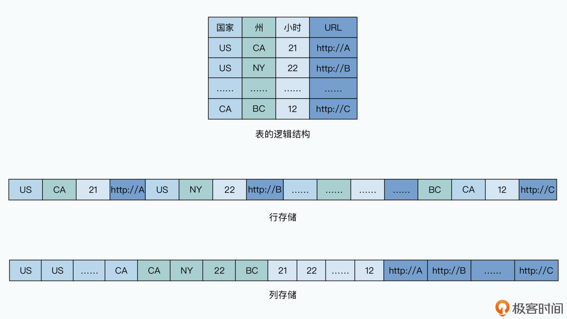 最后按照惯例,给你留一道思考题。很多教材和论文里都提到,采用列存储之后,对数据进行压缩的压缩率也上来了,这进一步提升了列存储的价值。不过,你有没有想过为什么采用列存储之后,数据的压缩率也能提升呢?你能不能研究一下这是为什么呢?