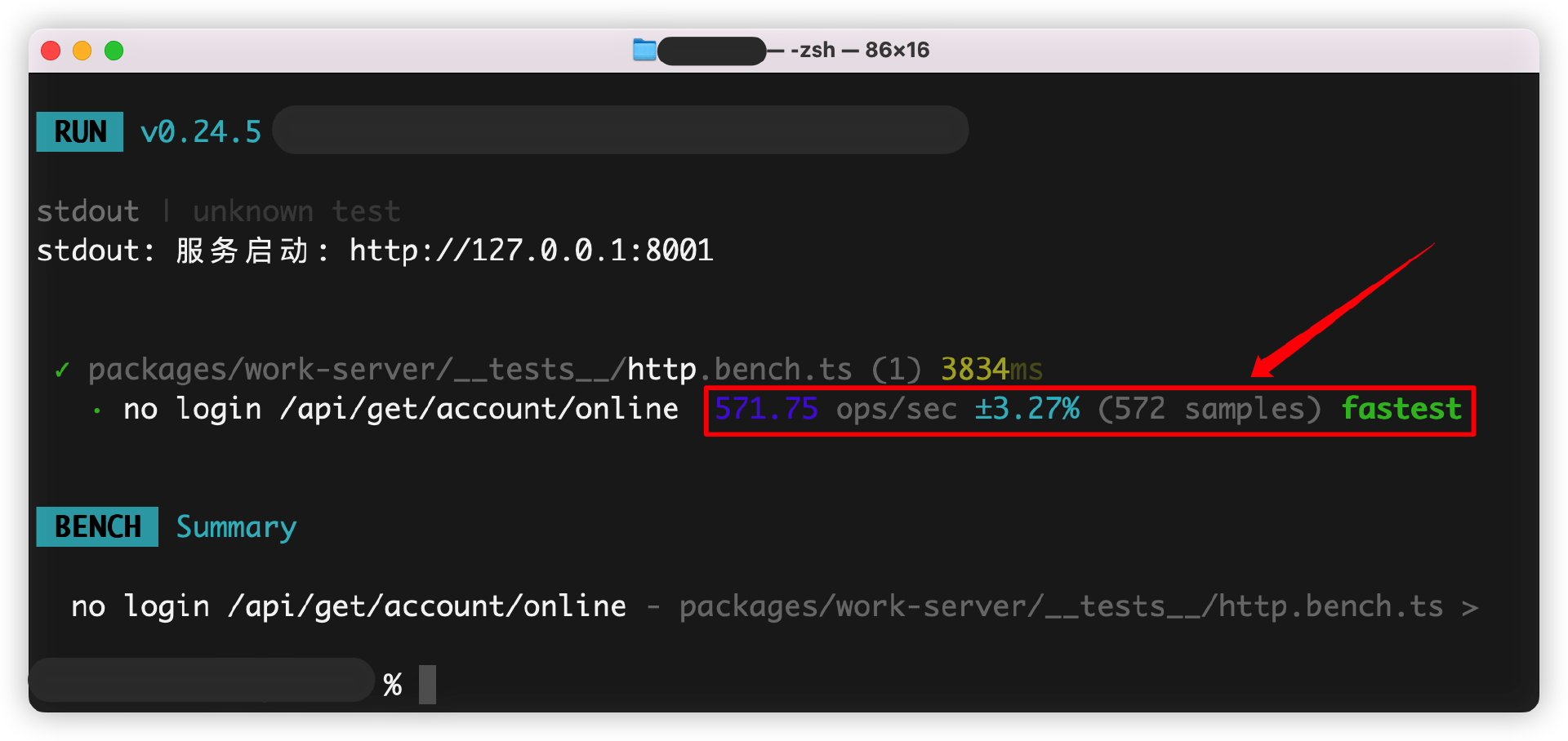 举个最简单的例子,就是服务端提供的HTTP接口,能在一秒内支撑多少次请求处理。我们用课程的登录态验证接口,基于Vitest做一次基准测试,来测试一秒内的请求数量情况。用Vitest的代码测试参考。