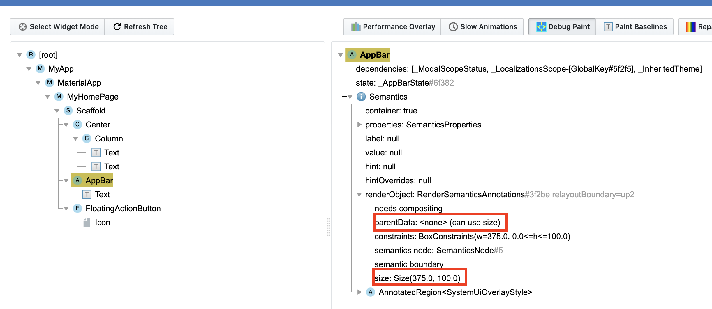 图11 Flutter Inspector之AppBar