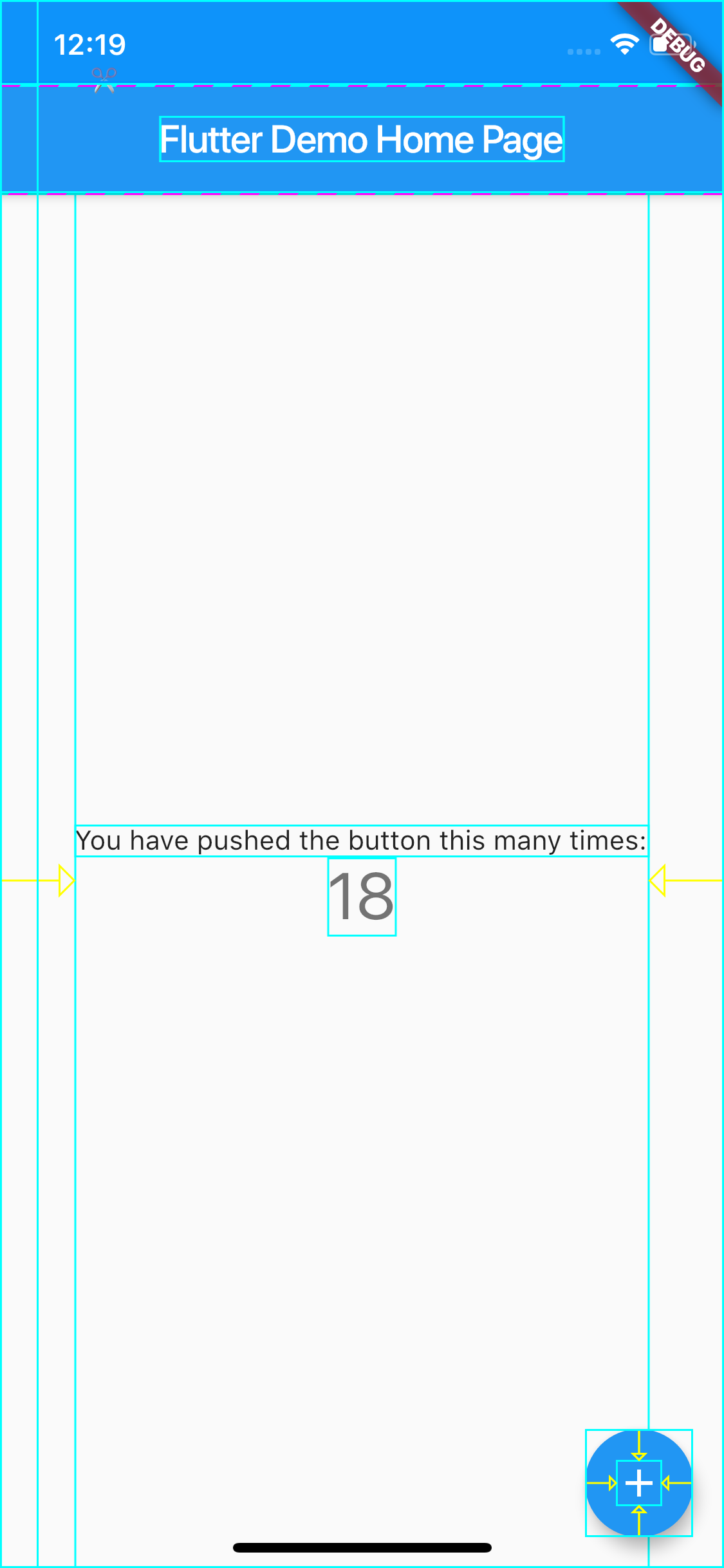 我们的App运行在iPhone X之上,其分辨率为375*812。接下来,我们以Column组件的布局信息为例,通过确认其水平方向为居中布局、垂直方向为充满父Widget剩余空间的过程,来说明Flutter Inspector的具体用法。