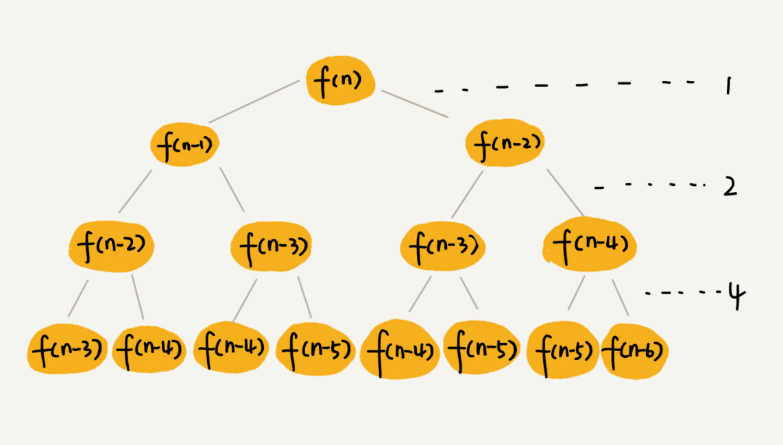 我们先把上面的递归代码画成递归树,就是下面这个样子: