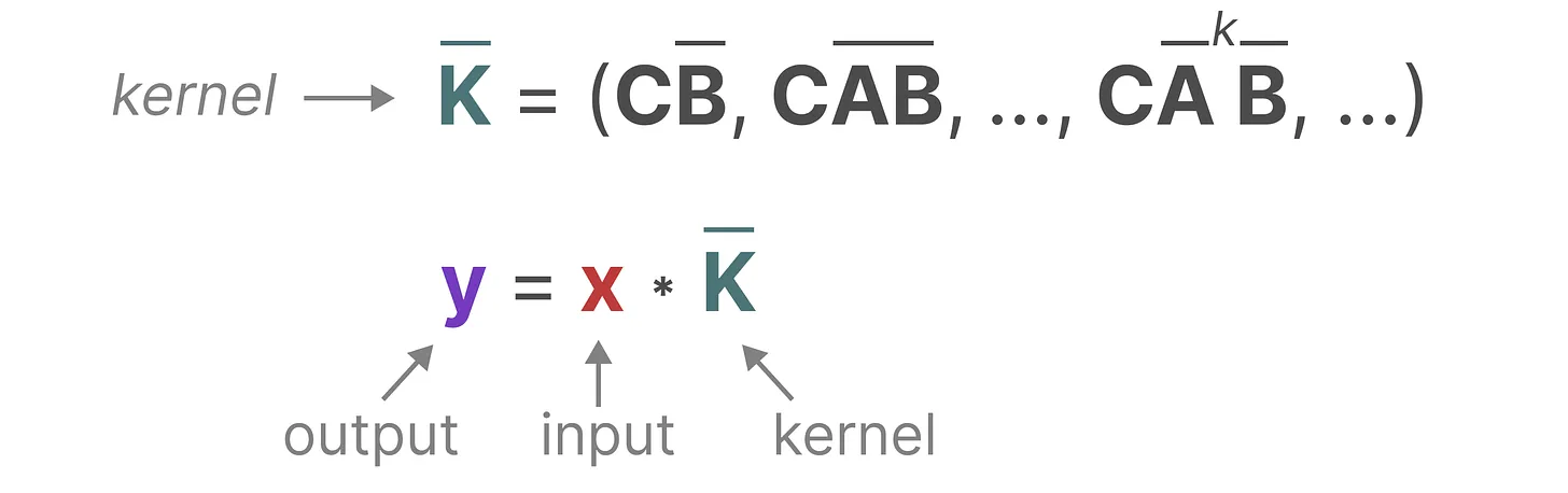 这样,将 SSM 表示为卷积,使它可以像卷积神经网络(CNN)一样进行并行训练。然而,由于内核大小固定,它们的推理速度不如 RNN 那样快。
