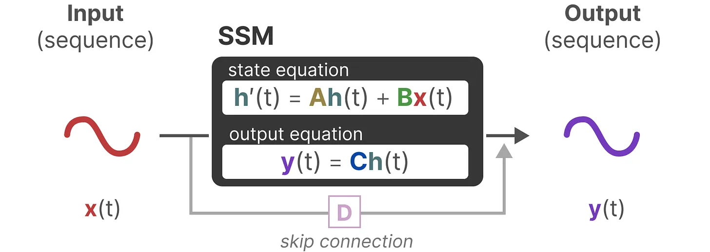 SSM描述的是动态系统,例如在 3D 空间中移动的物体,可以通过两个方程根据其在时间$t$的状态进行预测,其核心是两个方程:状态方程和输出方程(或者也可以称为:观测方程)。