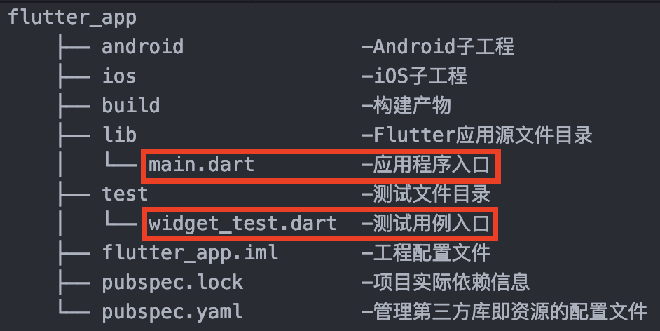 与Flutter应用通过main函数定义程序入口相同,Flutter单元测试用例也是通过main函数来定义测试入口的。不过,这两个程序入口的目录位置有些区别:应用程序的入口位于工程中的lib目录下,而测试用例的入口位于工程中的test目录下。
