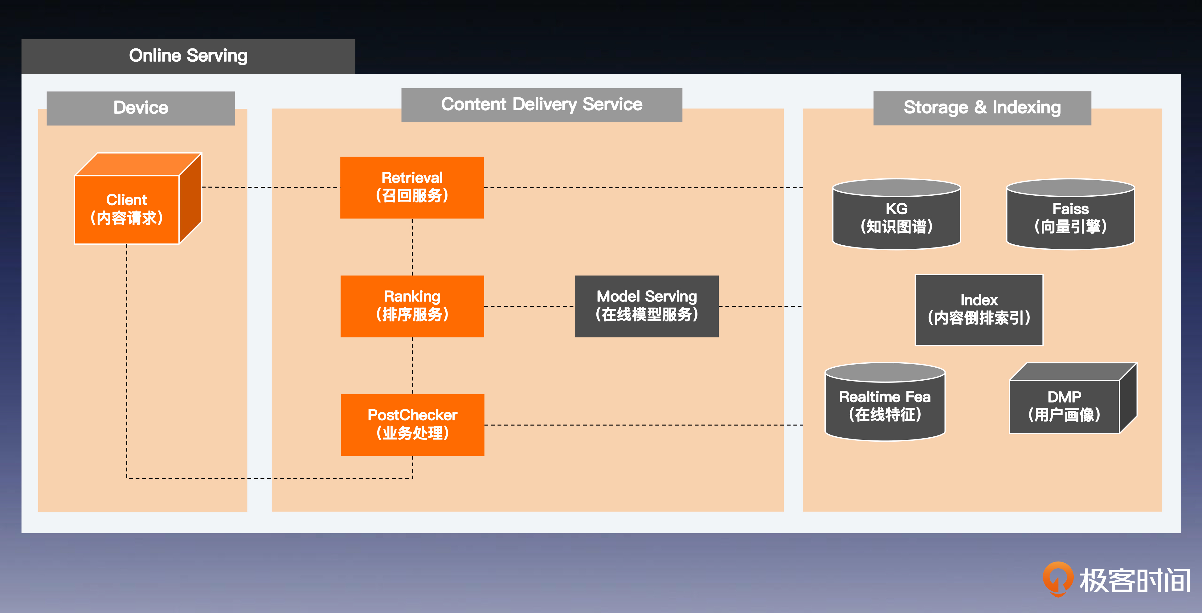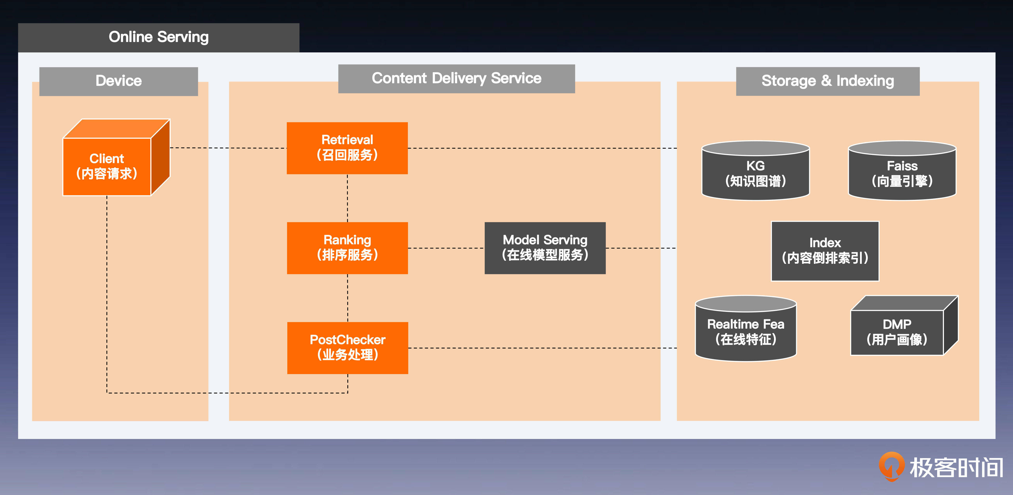 还记得我在上节课开头说的那句话么?“这个架构既可以满足搜索、广告和推荐等经典内容分发场景的需求。也同样能兼容内容生成系统,也就是AIGC的需求。”