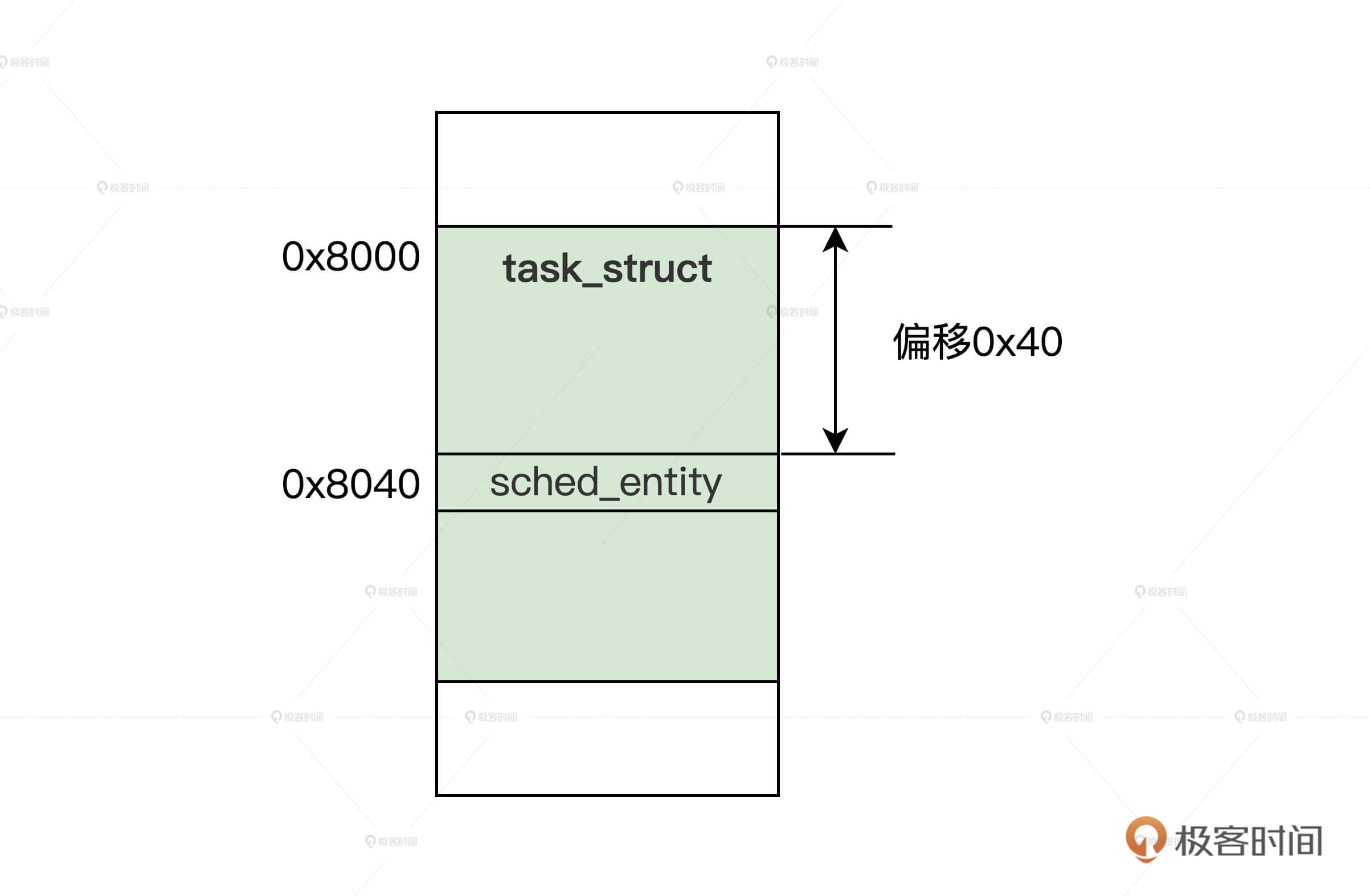 结合图示,我们只要通过sched_entity结构变量的地址,减去它在task_struct结构中的偏移(由编译器自动计算),就能获取到task_struct结构的地址。这样就能达到通过sched_entity结构,访问task_struct结构的目的了。
