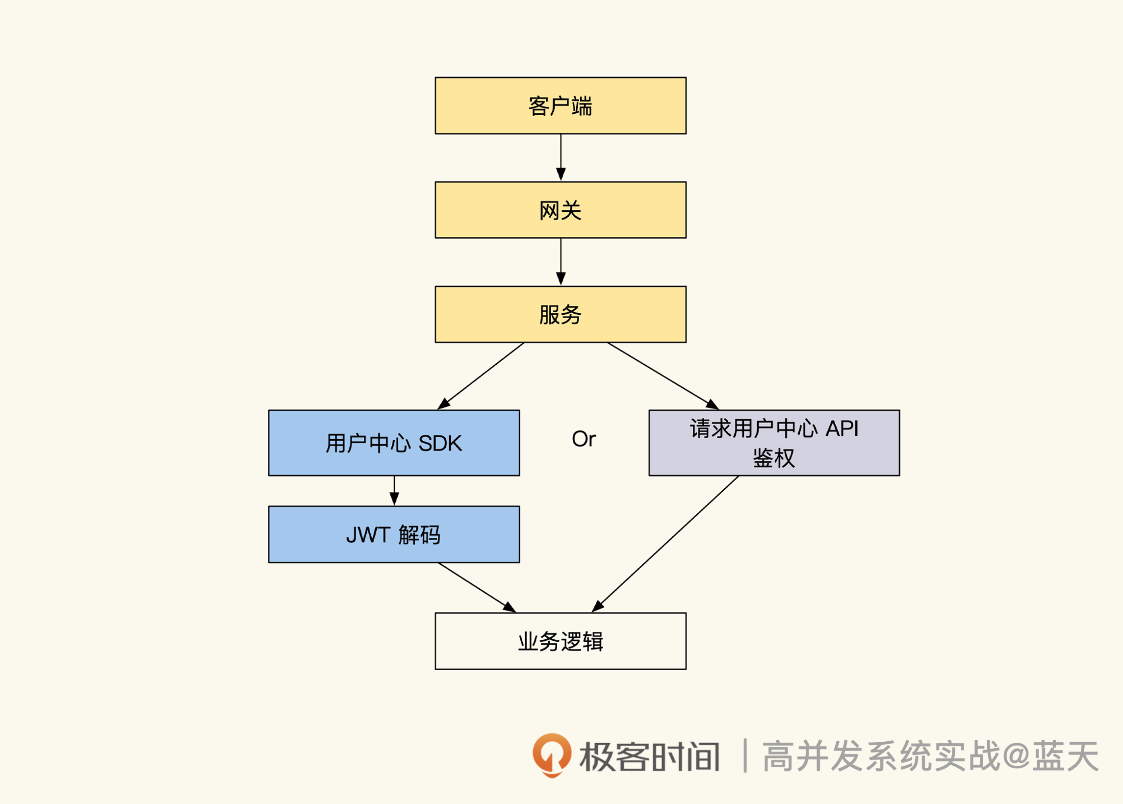 还记得我们[第三节课]提到的用户登陆设计么?每个业务可以不依赖用户中心来验证用户合法性,用户鉴权普遍会通过每个子业务集成用户中心的SDK来实现校验逻辑统一。