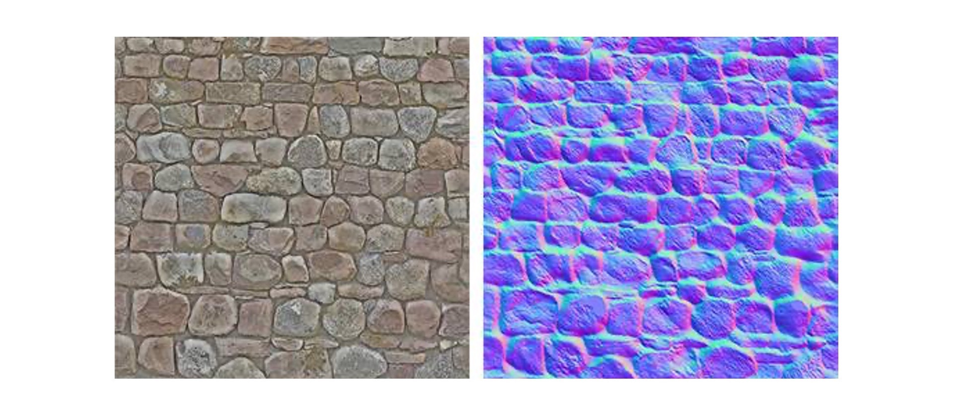 这里,我给出了两张图片,一张是纹理图片,一张是法线纹理,你能用它们分别来绘制一面墙,并且引入Phong反射模型,来实现光照效果吗?你还可以思考一下,应用法线贴图和不应用法线贴图绘制出来的墙,有什么差别?