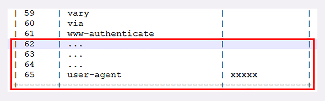 下面的这个表格列出了“静态表”的一部分,这样只要查表就可以知道字段名和对应的值,比如数字“2”代表“GET”,数字“8”代表状态码200。