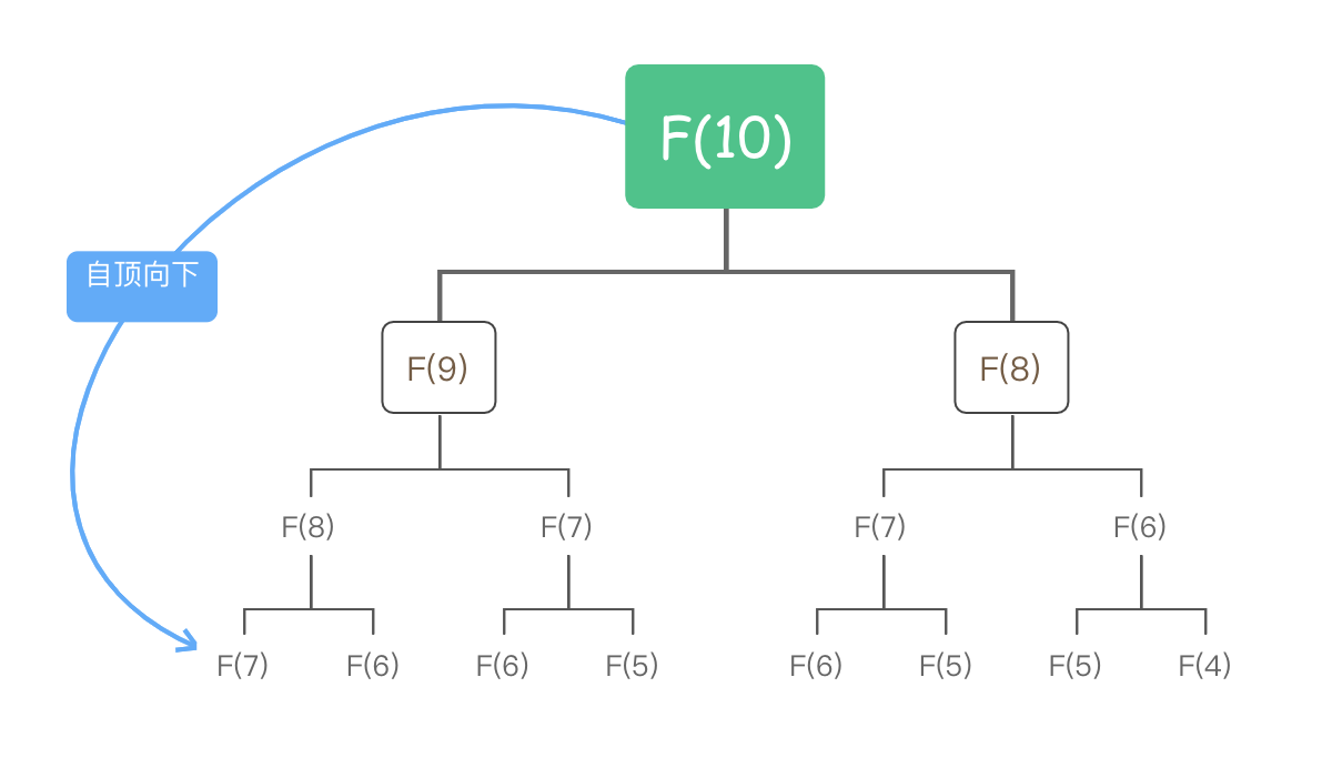 回顾一下自顶向下的方法,我们的思路是从目标问题开始,不断将大问题拆解成子问题,然后再继续不断拆解子问题,直到子问题不可拆解为止。通过备忘录就可以知道哪些子问题已经被计算过了,从而提升求解速度。