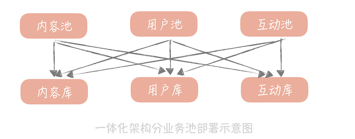 其实可以把与用户相关的逻辑部署成一个单独的服务,其它无论是用户池、内容池还是互动池都连接这个服务来获取和更改用户信息,也就是说只有这个服务可以连接用户库,其它的业务池都不直连用户库获取数据。