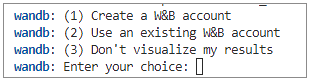 运行程序时,wandb会要求我选择是否已经有账号。我选择2,因为我刚刚已经创建了账号。
