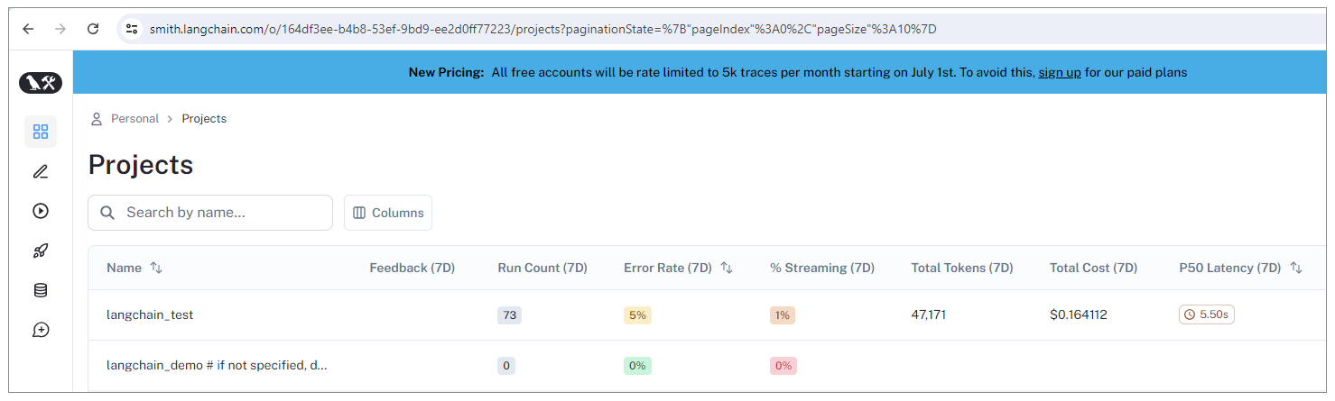 1 2 export LANGCHAIN_TRACING_V2=true export LANGCHAIN_API_KEY=<your-api-key>