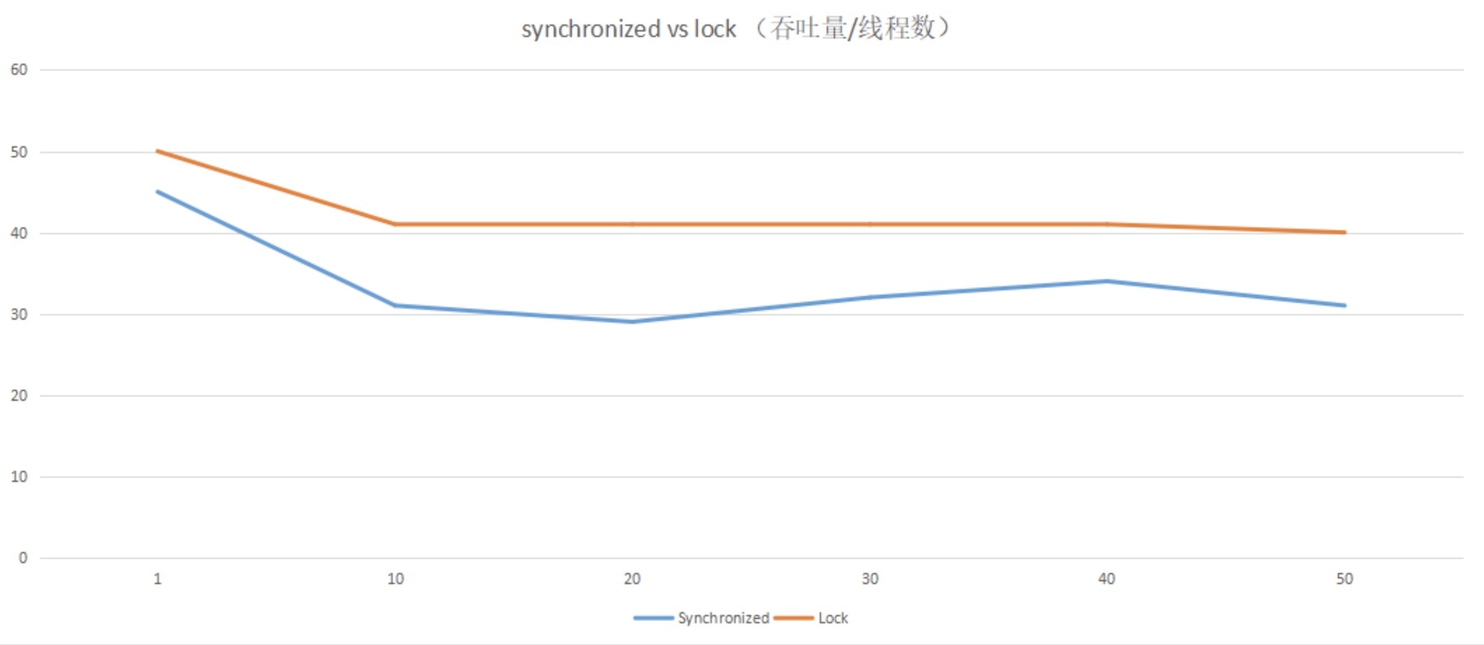 我们可以通过一组简单的性能测试,直观地对比下两种锁的性能,结果见下方,代码可以在Github上下载查看。