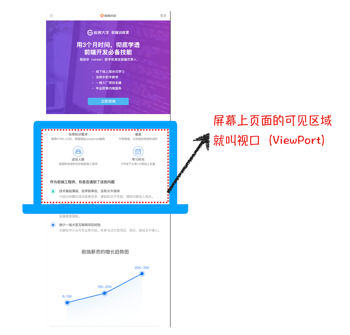 通常一个页面可能很大,但是用户只能看到其中的一部分,我们把用户可以看到的这个部分叫做视口(viewport)。