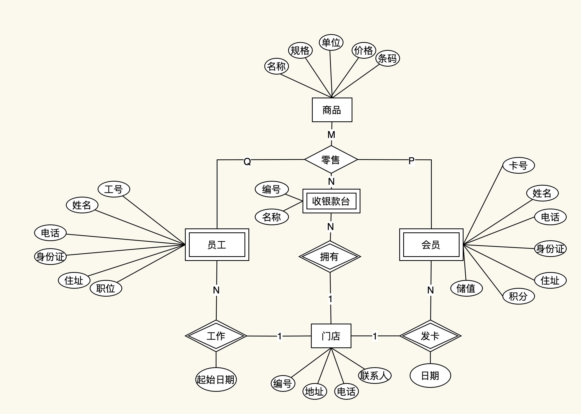 其中,商品和门店不依赖于任何其他实体,所以是强实体;会员和收银款台都依赖于门店,所以是弱实体。