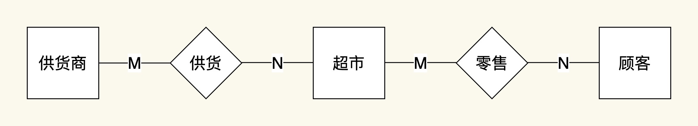在这个图中,供货商和超市之间的供货关系,两边的数字都不是1,表示多对多的关系。同样,超市和顾客之间的零售关系,也是多对多的关系。