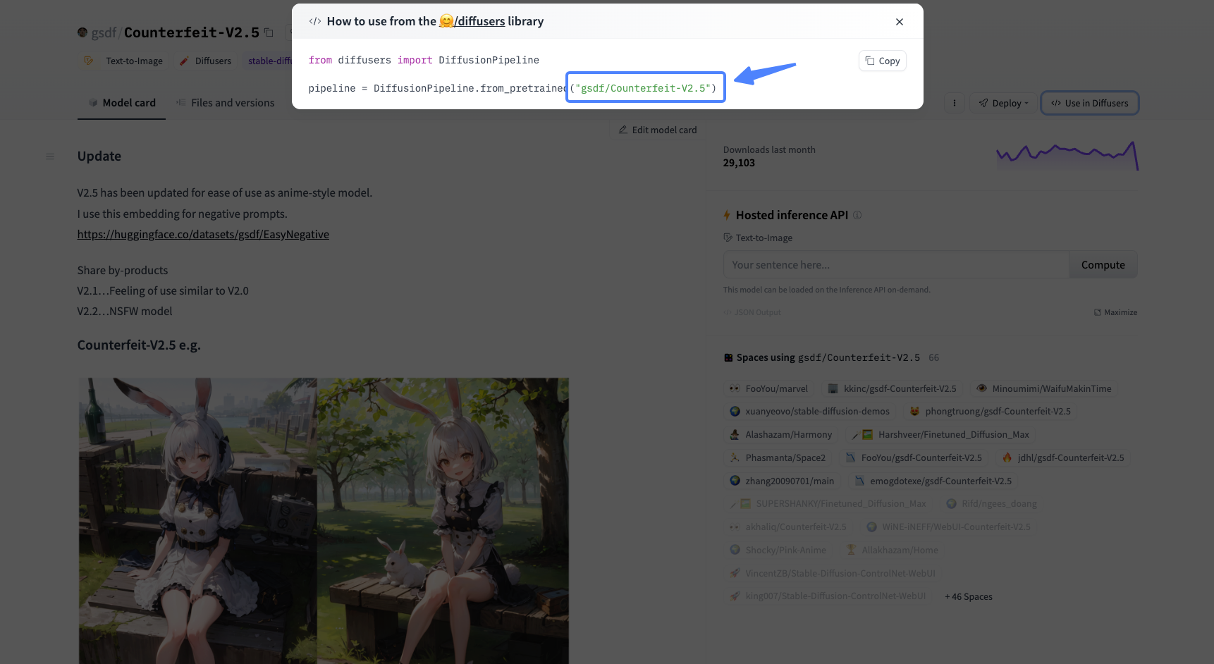 比如我们可以使用 Counterfeit-V2.5 这个模型,首先获取到它的model_id。