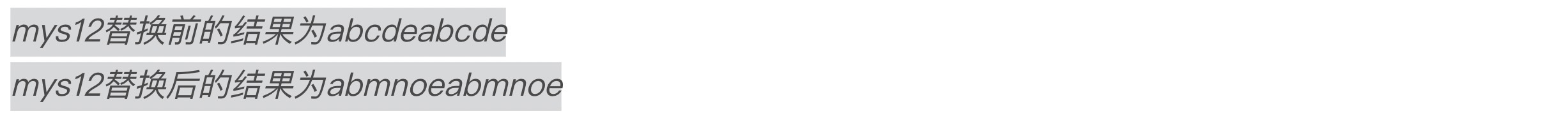 比如主串的内容是abcdeabcde,要求将其中所有的cd替换成mno,那么替换后的主串内容为abmnoeabmnoe。具体实现代码如下:
