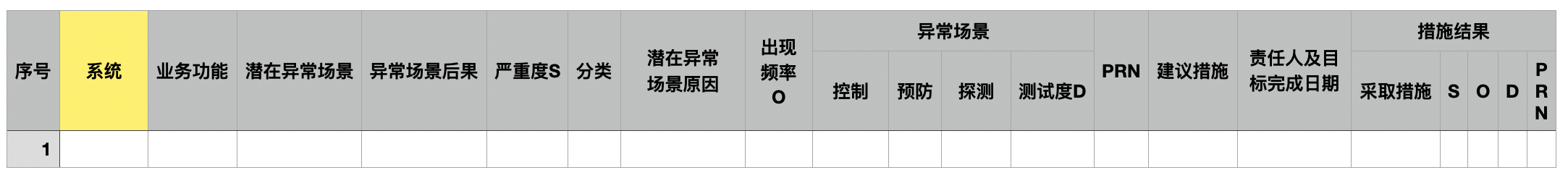 如今,在IT技术圈中,也不乏有人尝试在软件系统中落地。在FMEA中,最重要的就是下面这样的表格,你在网上也经常能看到。