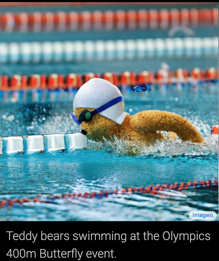 除此之外,还有可以根据输入文本自动生成图片的多模态模型。后面这张图是最新的Imagen的示例,它的输入是泰迪熊在参加奥林匹克400米蝶泳比赛。