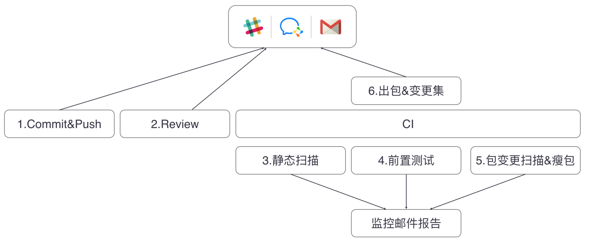 Gradle、Buck、Bazel它们代表的都是狭义上的编译,我认为广义的编译应该包括打包构建、Code Review、代码工程管理、代码扫描等流程,也就是业界最近经常提起的持续集成。