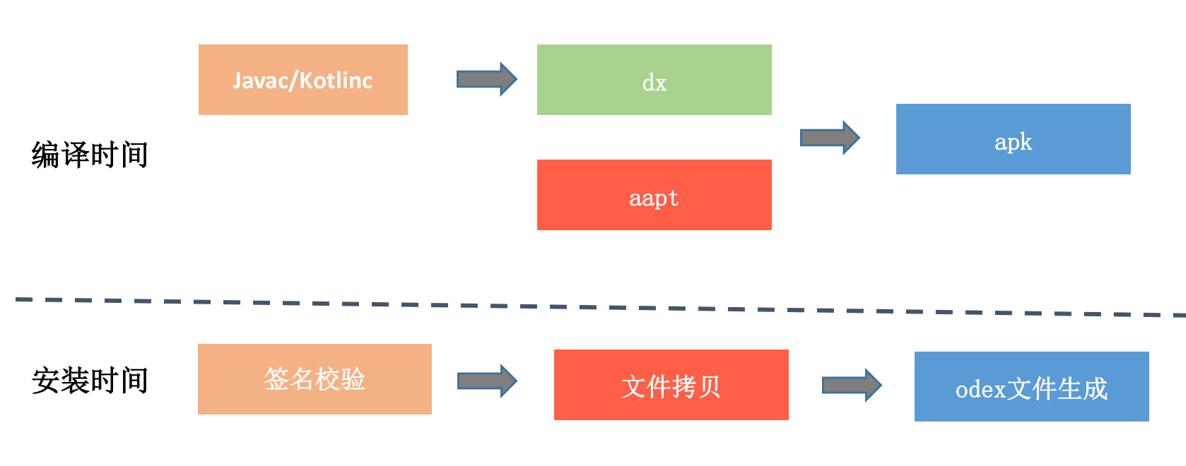 你可以把编译简单理解为,将高级语言转化为机器或者虚拟机所能识别的低级语言的过程。对于Android来说,这个过程就是把Java或者Kotlin转变为Android虚拟机运行的Dalvik字节码的过程。