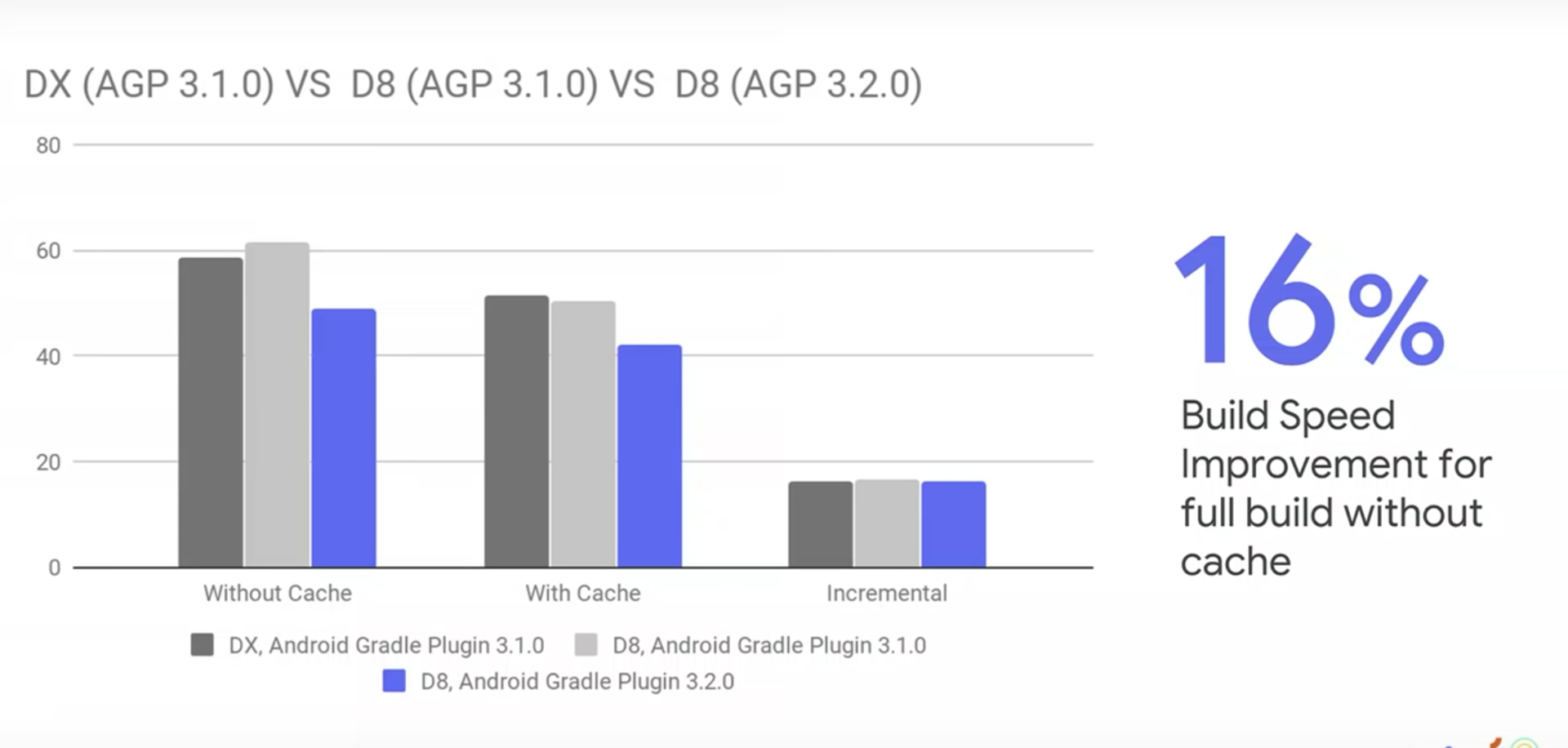 除了AAPT2,Google还引入了d8和R8,下面分别是Google提供的一些测试数据。