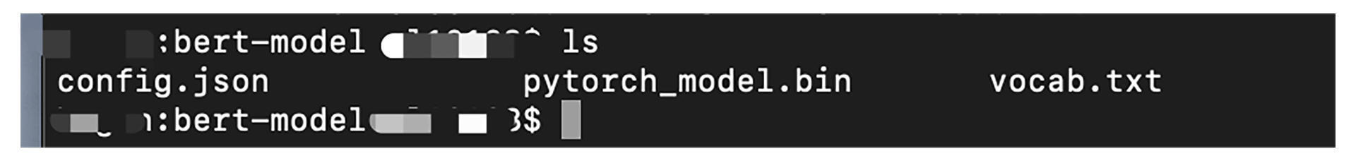 转换完模型之后,你会发现你的本地多了三个文件,分别是config.json、pytorch_model.bin和vocab.txt。我来分别给你说一说。