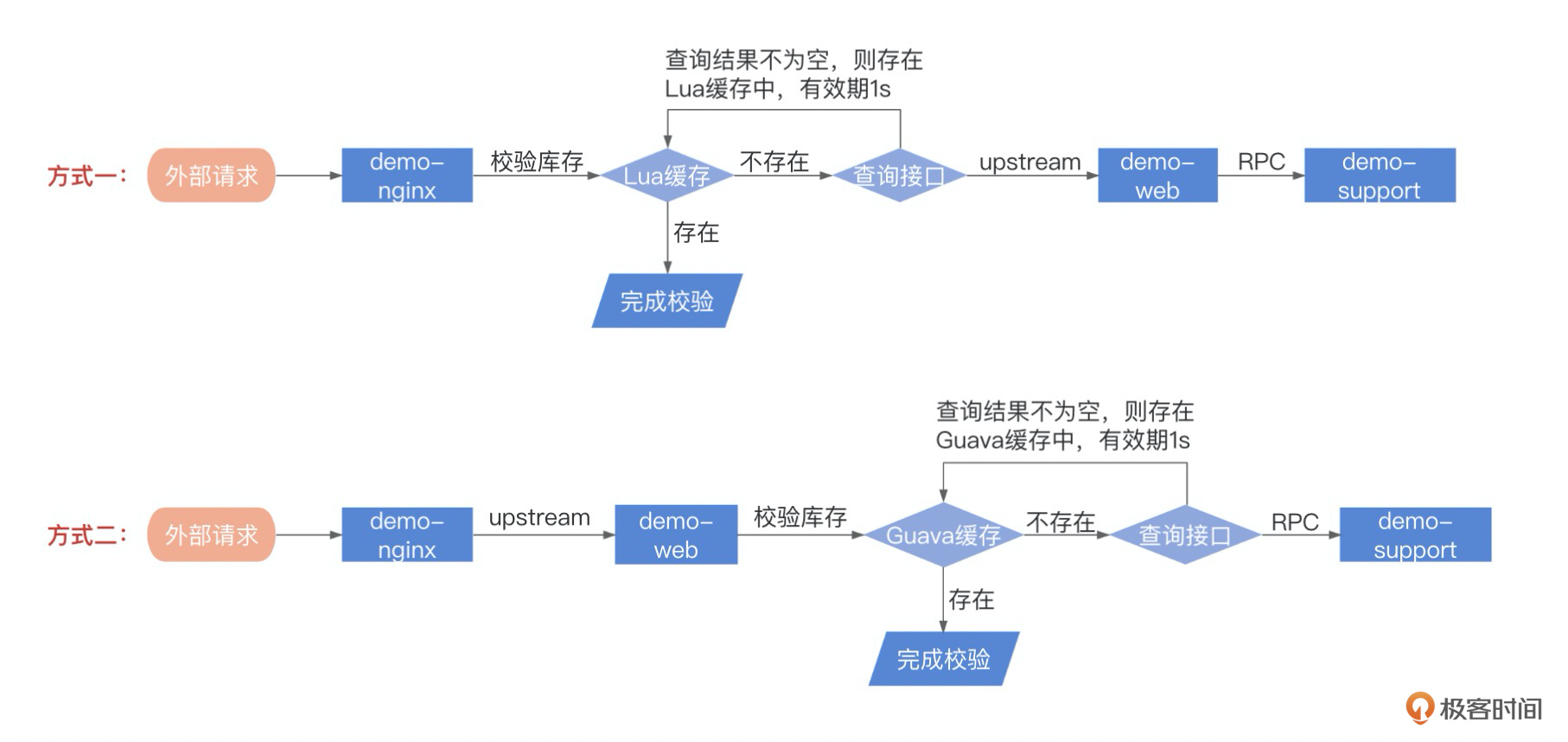 请你思考一下,根据我们校验前置的原则,是否可以仅仅将库存的校验前置到demo-nginx或demo-web中,像下图所示: