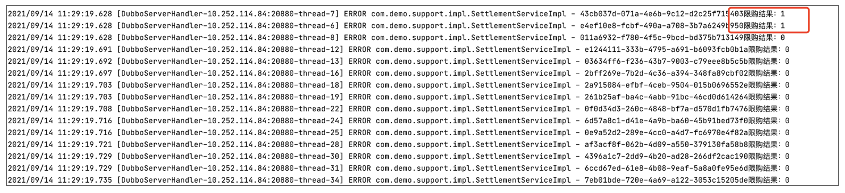 从上图可以看到,在1秒内发出了15个请求。现在我们看下限购的结果,1代表通过,0代表不通过,具体如下图所示: