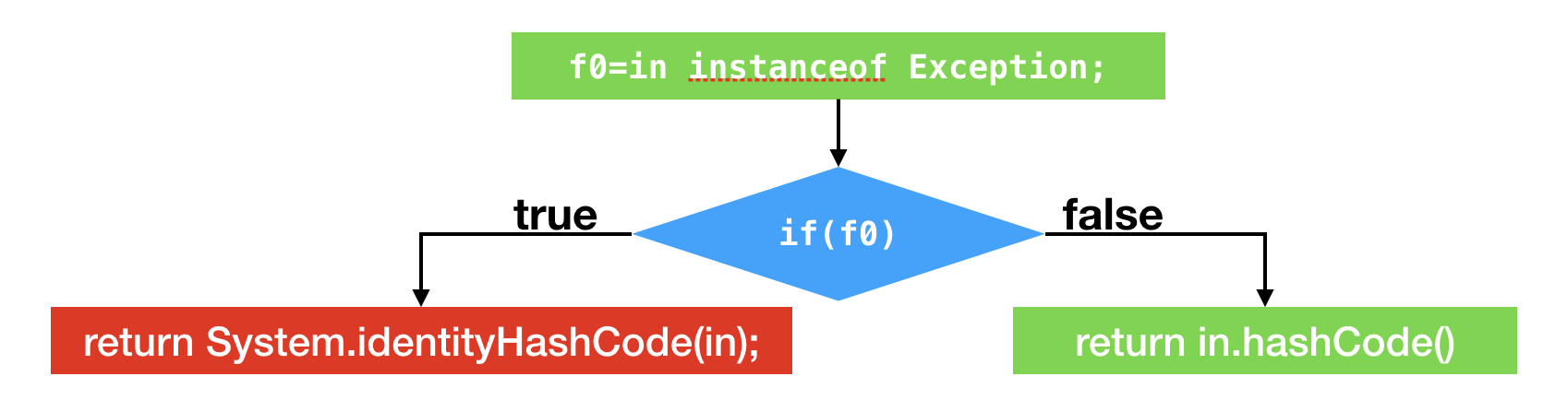 另外一个例子则是关于instanceof以及方法调用的类型profile。下面这段代码将测试所传入的对象是否为Exception的实例,如果是,则返回它的系统哈希值;如果不是,则返回它的哈希值。