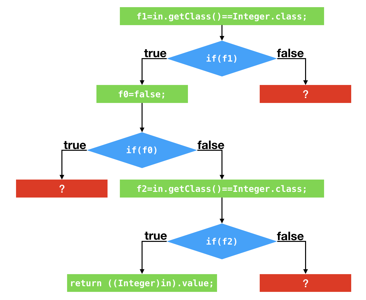 1 | public static int foo(boolean f, int in) { |