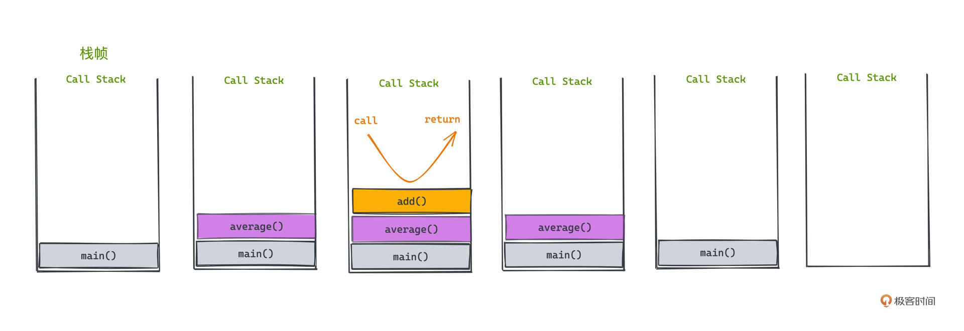 如果将调用栈的信息做一个完整的展示,大概是这个样子: