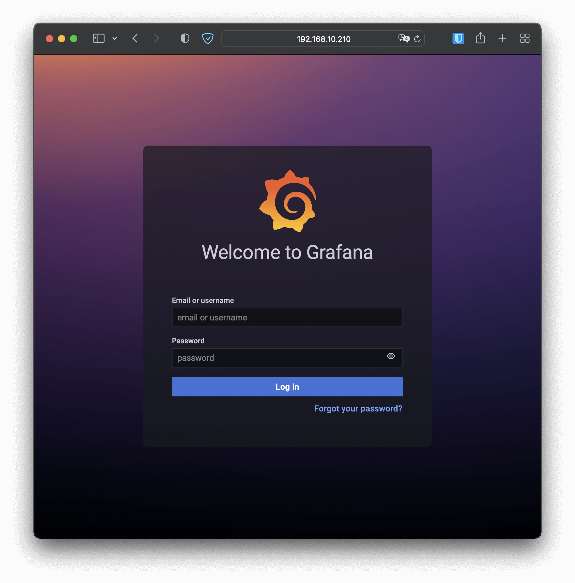 Prometheus的Web界面比较简单,通常只用来调试、测试,不适合实际监控。我们再来看Grafana,访问节点的端口“30358”(我这里是“http://192.168.10.210:30358”),它会要求你先登录,默认的用户名和密码都是“admin”: