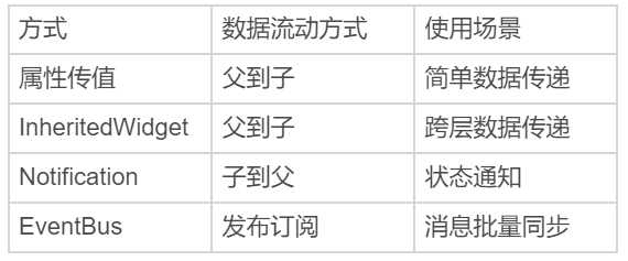 图5 属性传值、InheritedWidget、Notification与EventBus数据传递方式对比