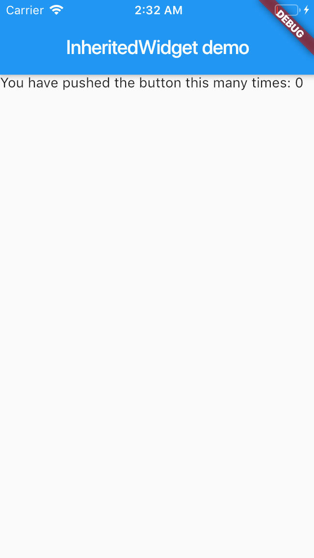 然后,我们使用CountContainer作为根节点,并用0初始化count。随后在其子Widget Counter中,我们通过InheritedCountContainer.of方法找到它,获取计数状态count并展示: