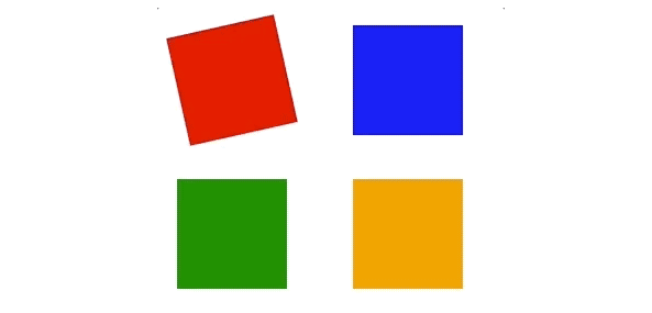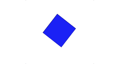 我们先来说比较简单的增量动画,即每帧给属性一个增量。怎么理解呢?我举个简单的例子,我们可以创建一个蓝色的方块,然后给这个方块的每一帧增加一个rotate角度。这样就能实现蓝色方块旋转的动画。具体的代码和效果如下所示。